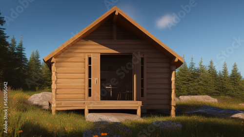 Obraz premium small log cabin on the outskirts, in the middle of the environment,...