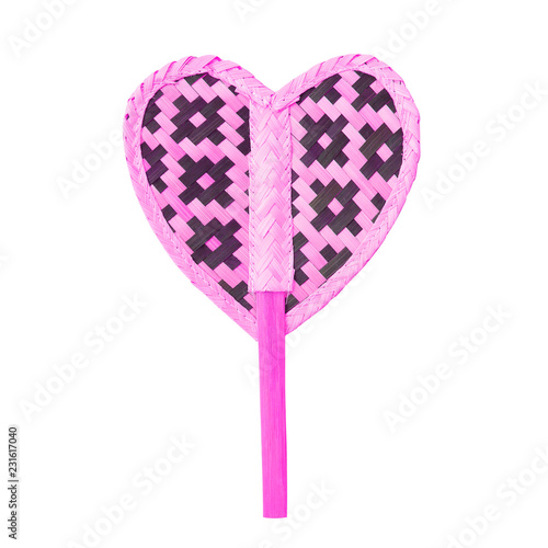 © prapann, Fototapeta premium Small mobile bamboo pink fan isolated on white background