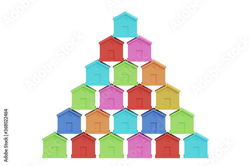 Obraz premium Small multi-colored houses are stacked in a pyramid shape, futuristic town block, 3d render