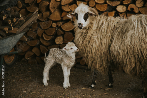 © erika8213, Fototapeta premium Small newborn lamb and ewe.