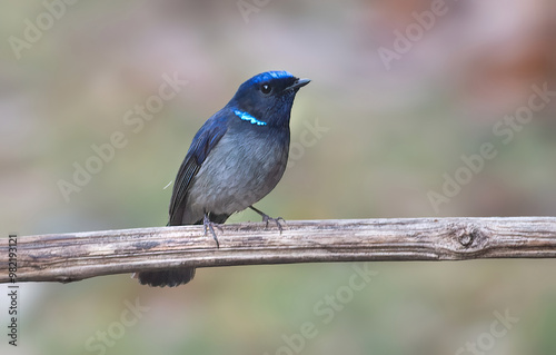 Naklejka premium Small Niltava- a bird with bright blue with the brightest patches on the shoulder and forehead.
