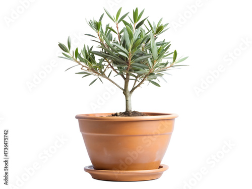 Obraz premium Small olive tree in a terracotta pot isolated on transparent background