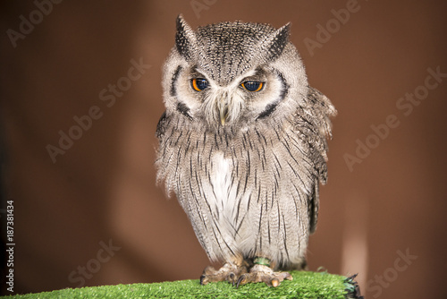 © Inma, Naklejka premium Small Owl waiting for display of falconry