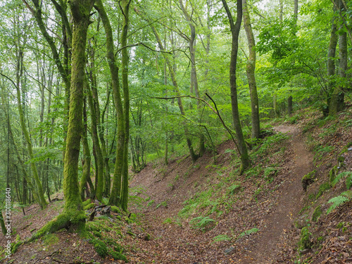 Obraz premium Small path in deep green forest.