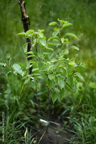 Fototapeta premium Small pear tree. Garden in summer.