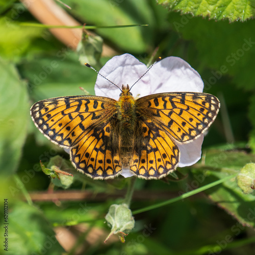 Fototapeta premium Small Pearl-boardered Fritillary on Bramble