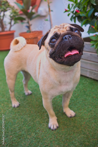 © Salva G. Cubells, Obraz premium Small pet of the Carlino dog breed. Small dog very appreciated as a pet for its size and for being very sociable.
