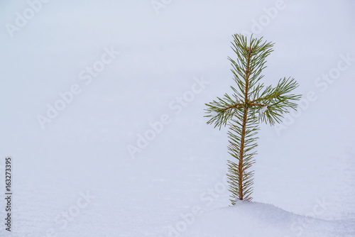 Obraz premium Small pine tree in snow landscape