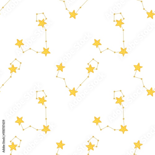 © Khrystyna Turchyn, Obraz premium Small Pisces Zodiac Constellations Design Seamless Pattern on a White Background