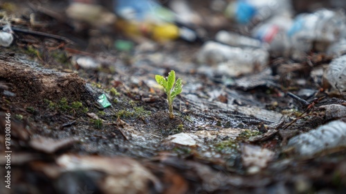 © anis rohayati, Fototapeta premium Small plant growing through debris