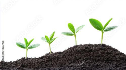 Naklejka premium Small Plants Growing in a Neat Line, Symbolizing Growth, Agriculture, and...