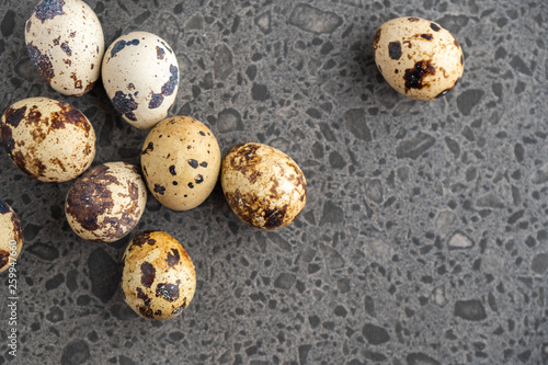 © k_samurkas, Obraz premium Small quail eggs on the stone background
