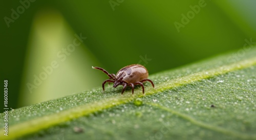 © F2bee, Fototapeta premium Small Red Beetle on Green Leaf Closeup.