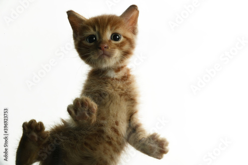 Obraz premium Small red kitten on a white background