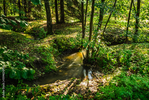 © maxandrew, Fototapeta premium Small river in the green summer forest. Long Exposure.