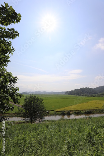 © Guhwan, Obraz premium small road across rice field