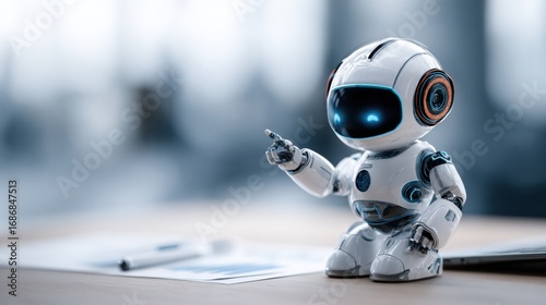 © juwairiya_nameera, Fototapeta premium small robot pointing at charts