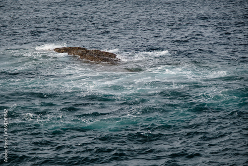 © photopk, Naklejka premium small rocks at the open sea in cloudy sky summer day with empty copy space