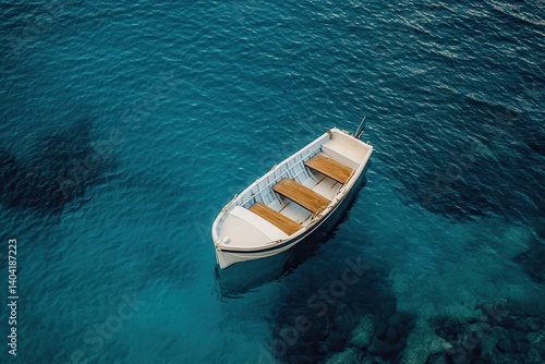 © Garage art, Fototapeta premium Small Rowboat in Azure Water