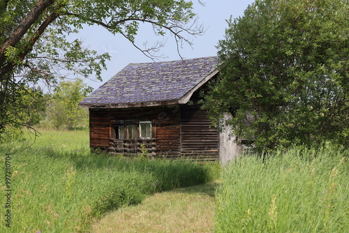 © Don Hoskins, Fototapeta premium small rustic wooden cabin tucked in clearing