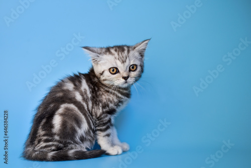 © Александрина Демидко, Obraz premium small Scottish Fold kitten on a blue background
