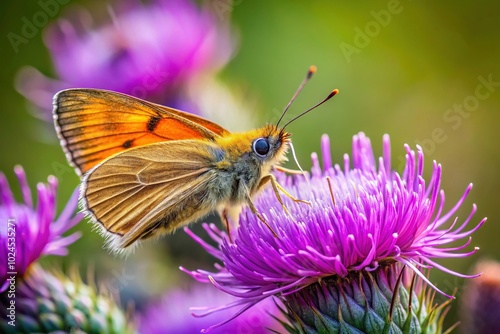 Obraz premium Small Skipper Butterfly on Purple Thistle - Nature Photography