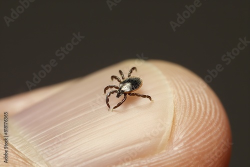 © Road Red Runner, Obraz premium Small spider perched gracefully on persons finger.