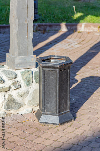 Fototapeta premium Small street litter bin in a public city park
