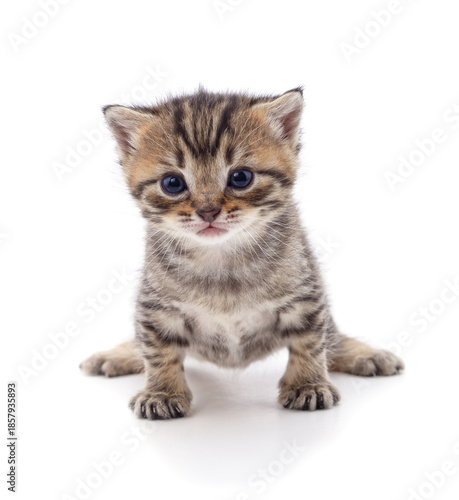 © voren1, Obraz premium Small tabby kitten sitting on a white background.