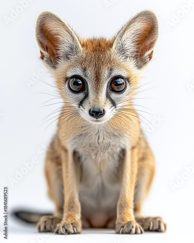 © Dece Std, Obraz premium Small, tan fox sits facing forward with large eyes and big ears, on white