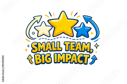 © 4zevar, Obraz premium Small team, big impact: three colorful stars with arrows and dots