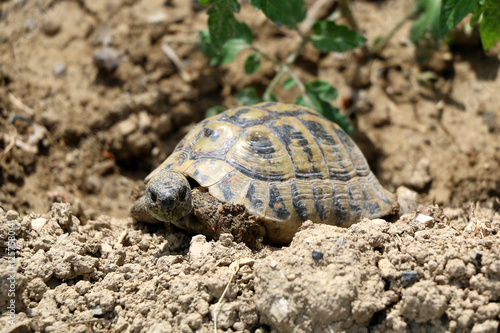 © jelena990, Fototapeta premium Small tortoise (Cryptodira) walking in a garden. Selective focus.