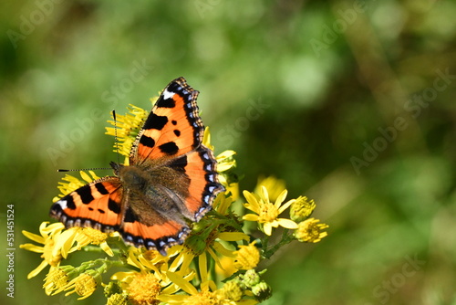 © Audrius, Obraz premium Small Tortoiseshell (Aglais urticae) butterfly on flower, Kilkenny, Ireland