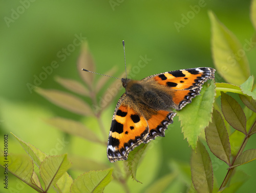 Obraz premium Small Tortoiseshell Butterfly Resting on a Leaf