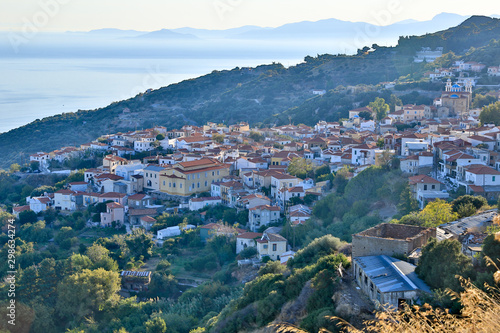 © Juergen Nowak, Fototapeta premium Small towns Marathokambos, Platanos, Voutliotes and Koumaiika on the Greek Aegean island of Samos.