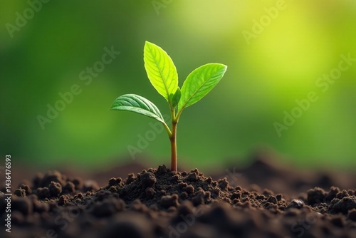 © Manit, Naklejka premium Small tree seedling, thin brown stem, fresh growth , young, growth, bright