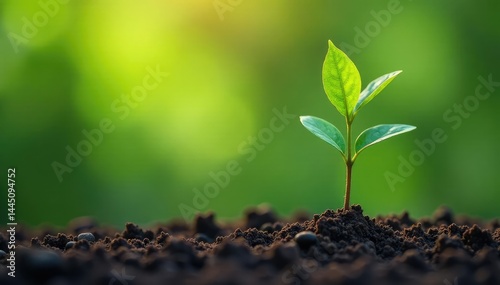 Naklejka premium Small tree seedling, thin trunk, fresh foliage , botanical, wood, vibrant
