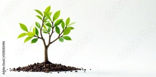 © Patthama, Fototapeta premium Small tree with delicate branches and leaves on white background, growth, garden