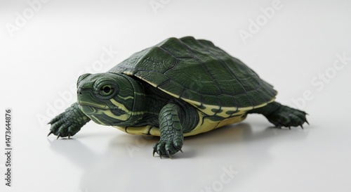 Obraz premium Small turtle calmly rests on bright white background soft light illuminates...