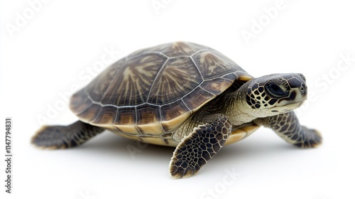 Fototapeta premium Small turtle hatchling isolated on white background.