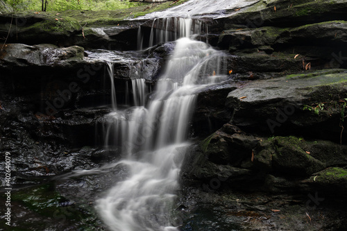 © AlexandraDaryl, Fototapeta premium Small water cascade in the river.