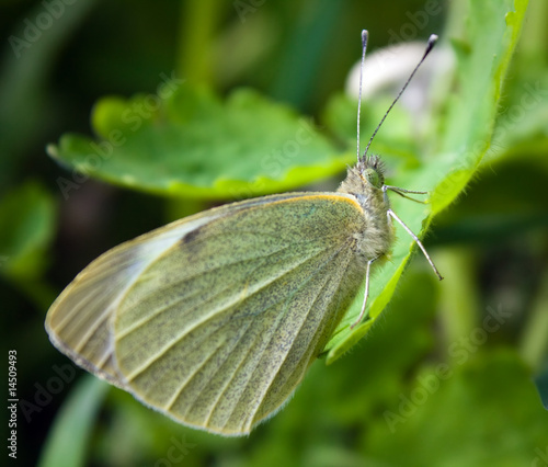 © chehov, Obraz premium Small white butterfly (Pieris rapae) on leaf