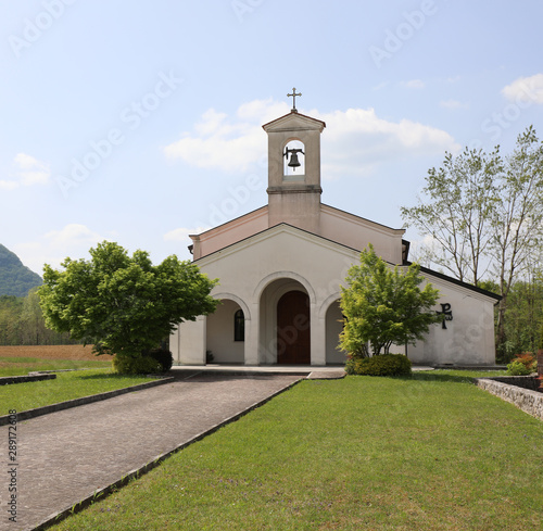 © ChiccoDodiFC, Naklejka premium small white church in the Cimano Town in Northern Italy
