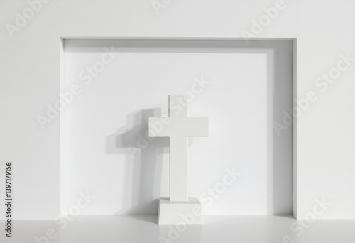 © soleg, Naklejka premium small white cross crucifixion figurine on white background