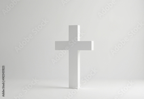 © soleg, Obraz premium small white cross crucifixion figurine on white background