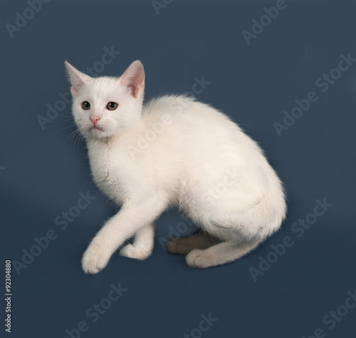 © Hanna Darzy, Obraz premium Small white kitten sitting on gray