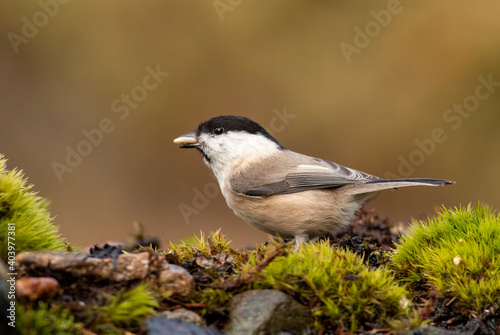 © georgigerdzhikov, Naklejka premium Small Willow Tit in autumn forest