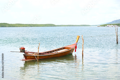© kathayut, Fototapeta premium Small wooden boat in the sea