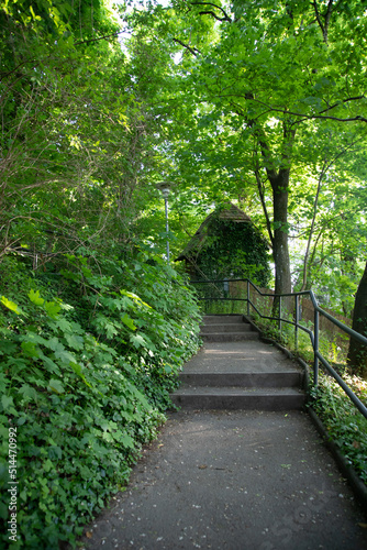 © erika8213, Obraz premium Small wooden house in green sping park.