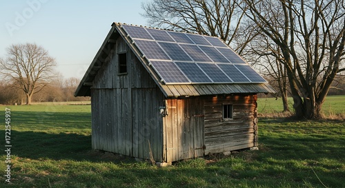 © JOHANEKO, Obraz premium Small wooden structure with solar panels